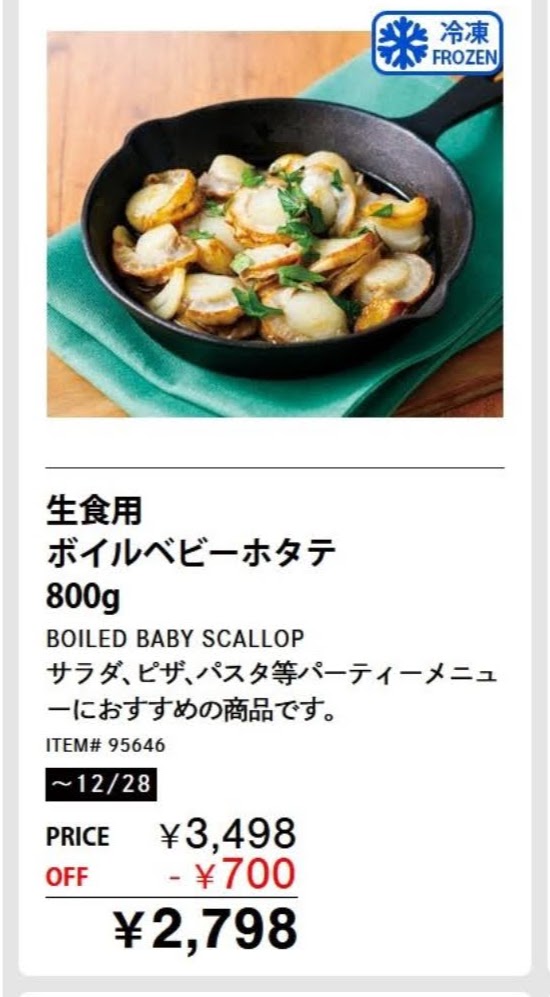 • 特徴:すでにボイル済み&殻なしで、解凍するだけでそのまま食べられる!小ぶりながらも旨みがギュッと詰まっていて、甘みとコクがしっかり生食用なので、サラダやカルパッチョにも安心して使える冷凍保存できるから、必要な分だけ取り出して使えるのが便利!