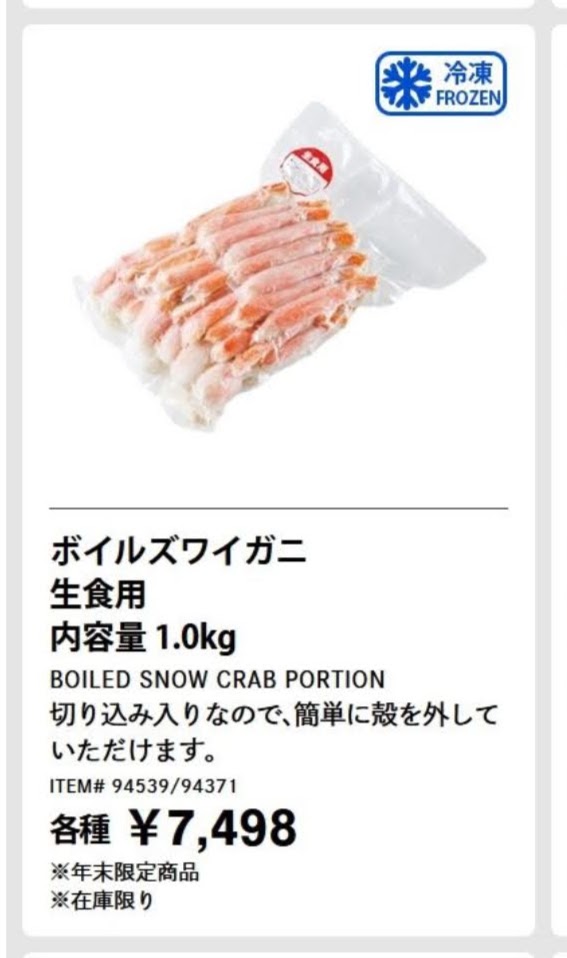 • 商品名:ボイルズワイガニ 生食用(冷凍)