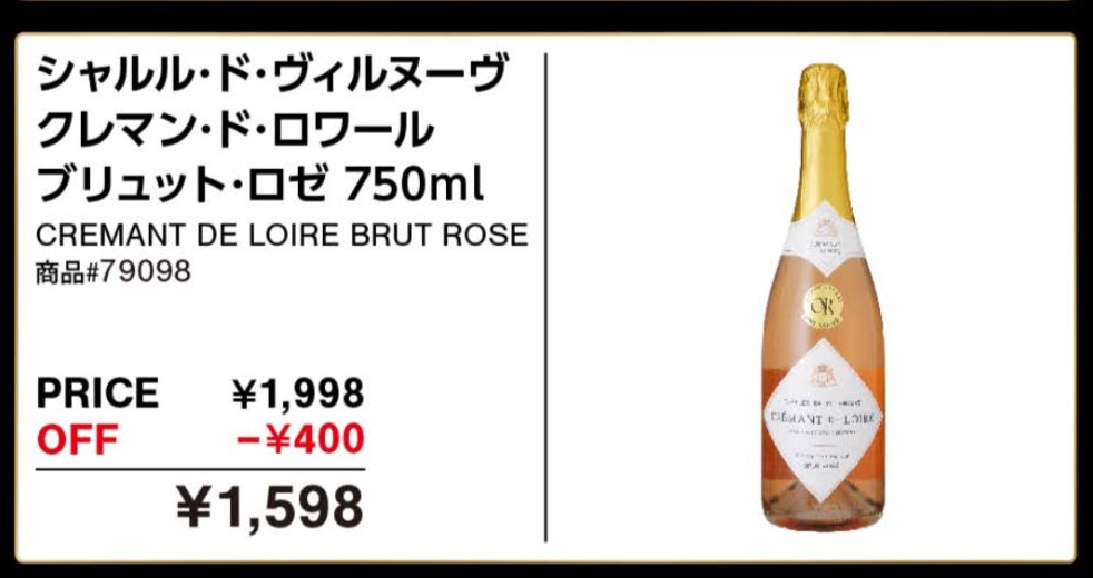コストコで取り扱われている「シャルル・ド・ヴィルヌーヴ クレマン・ド・ロワール ブリュット・ロゼ」は、フランス・ロワール地方産の本格ロゼスパークリングワイン〜!🍷🌸 シャンパンと同じ瓶内二次発酵で造られていて、華やかな香りと爽快な飲み口が魅力