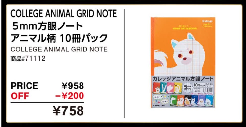 • 商品名:日本ノート COLLEGE アニマル柄 方眼ノート 10冊パック
