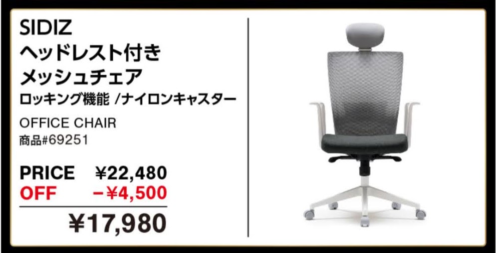 • 商品名:SIDIZ ヘッドレスト付きメッシュチェア