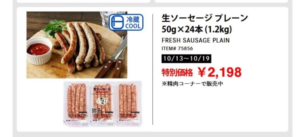 - 商品名:生ソーセージ プレーン(FRESH SAUSAGE PLAIN)