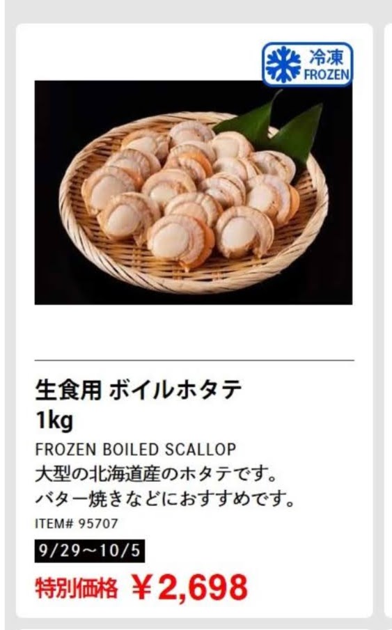 - 部位:貝柱+ヒモ入り。プリプリ&コリコリの食感が両方楽しめます。