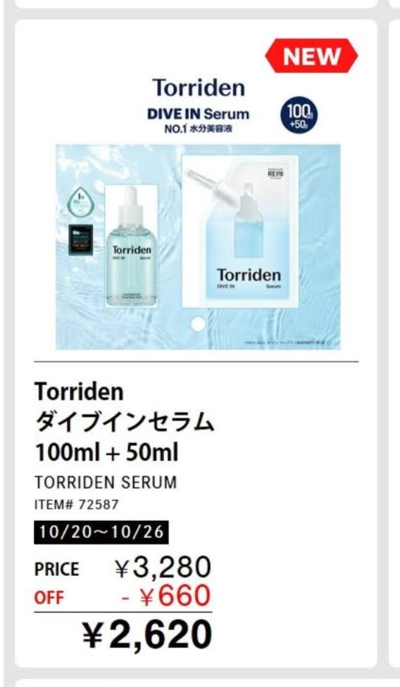 コストコで手に入る「Torriden(トリデン)ダイブインセラム 100ml+50mlセット」は、まさに“肌にしみこむ水の精”みたいな存在!乾燥が気になる季節にもぴったりの、超人気うるおい美容液💧✨