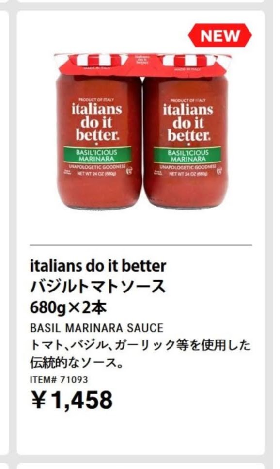 「Italians Do It Better バジルトマトソース」は、イタリア産のトマトを使った本格派トマトソースで、コストコで人気の瓶入り商品🍅🇮🇹✨