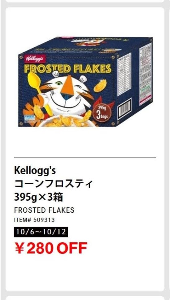 • 商品名:Kellogg’s コーンフロスティ(商品番号 #509313)