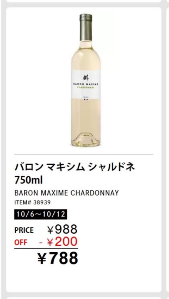 • 商品名:Baron Maxime Chardonnay(バロン マキシム シャルドネ)