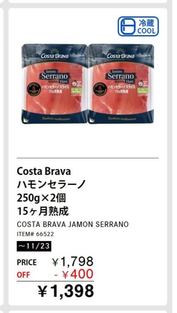 • 商品名:Costa Brava ハモンセラーノ(Jamon Serrano)