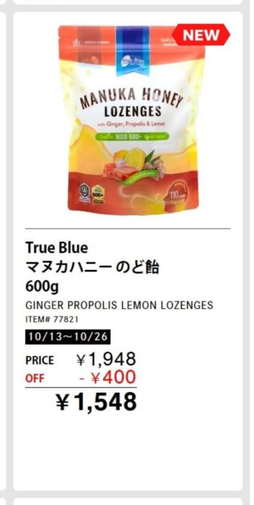 コストコで出会ったTrue Blue のプロポリス&マヌカハニーのど飴❣