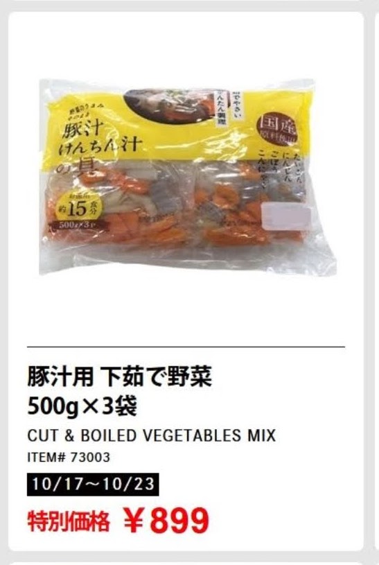 - 商品名:豚汁用下茹で野菜(清水物産)