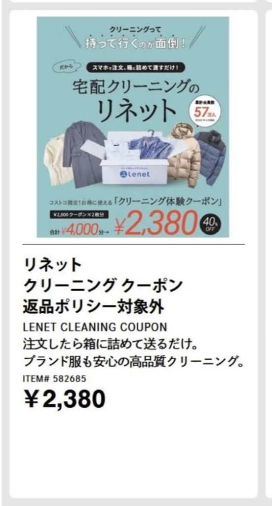 コストコで販売されているリネットの宅配クリーニングクーポンは、便利でお得なサービスだけど、返品ポリシーの対象外商品として扱われています。🧺🚫