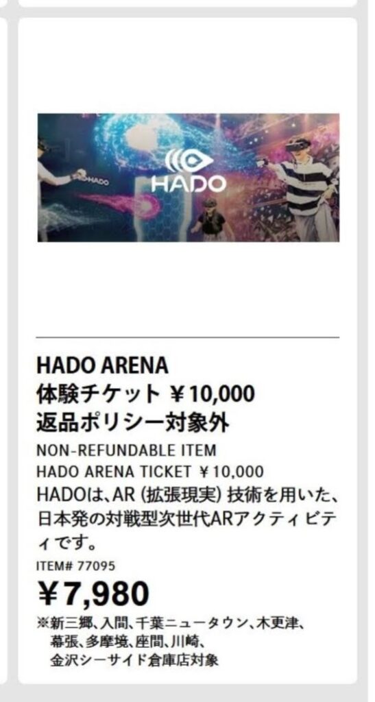 - 内容:ARスポーツ「HADO」の体験に使えるプリペイド式チケット